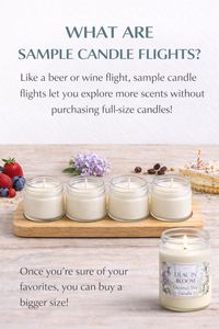 Our Sample Candle Flights are designed to let you explore a variety of scents before committing to a full-size candle—just like a wine or beer flight, but for fragrance.